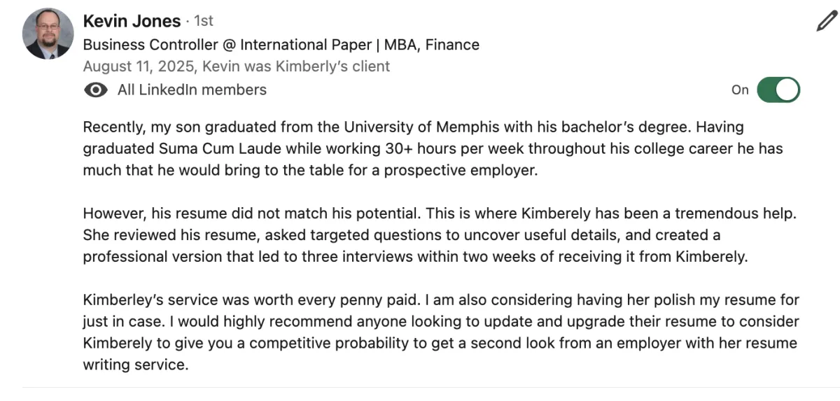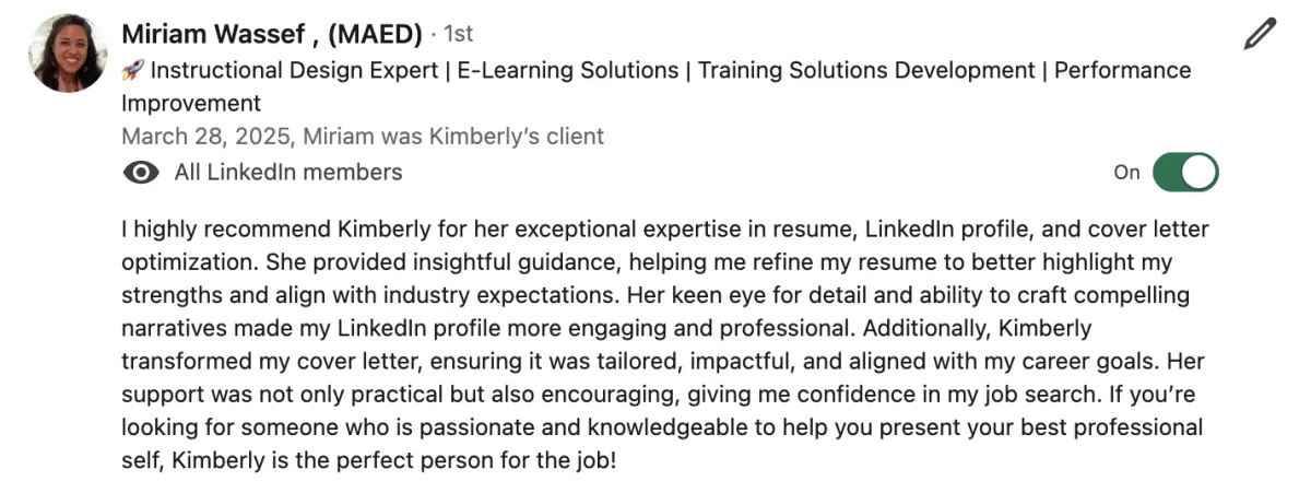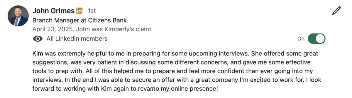 💰 Help a client land a job after 13 months of unemployment — by rebuilding confidence, repositioning experience, and crafting a resume that finally got traction. Within weeks, they were back in interviews and ultimately accepted an offer they once thought was out of reach...